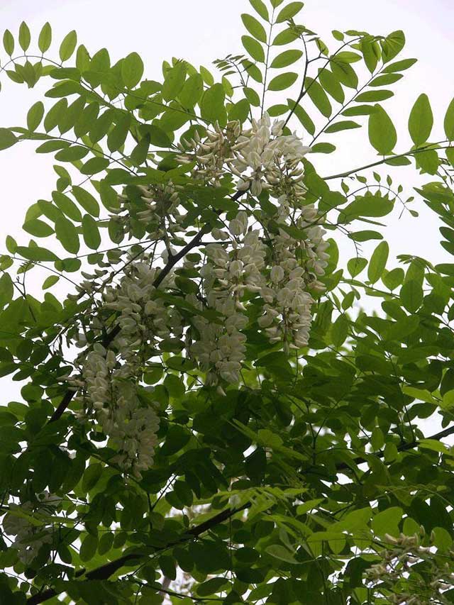 刺槐,又名洋槐。拉丁文名:Robinia pseudoacacia L.豆科、刺槐屬落葉喬木,樹皮灰褐色至黑褐色,淺裂至深縱裂,稀光滑。 原生于北美洲,現被廣泛引種到亞洲、歐洲等地。刺槐樹皮厚,暗色,紋裂多;樹葉根部有一對1~2mm長的刺;花為白色,有香味,穗狀花序;果實為莢果,每個果莢中有4~10粒種子。刺槐木材堅硬,耐腐蝕,燃燒緩慢,熱值高。