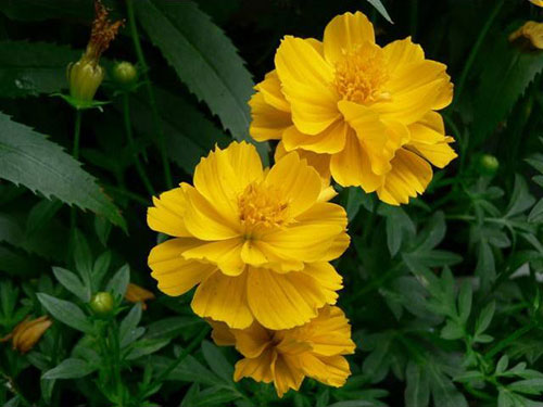 生活習(xí)性:硫華菊喜陽(yáng)光充足,不耐寒。多分枝,葉為對(duì)生的二回羽狀復(fù)葉,深裂,裂片呈披針形,有短尖,葉緣粗糙,與大波斯菊相比葉片更寬。春播花期6-8月,夏播花期9-10月。